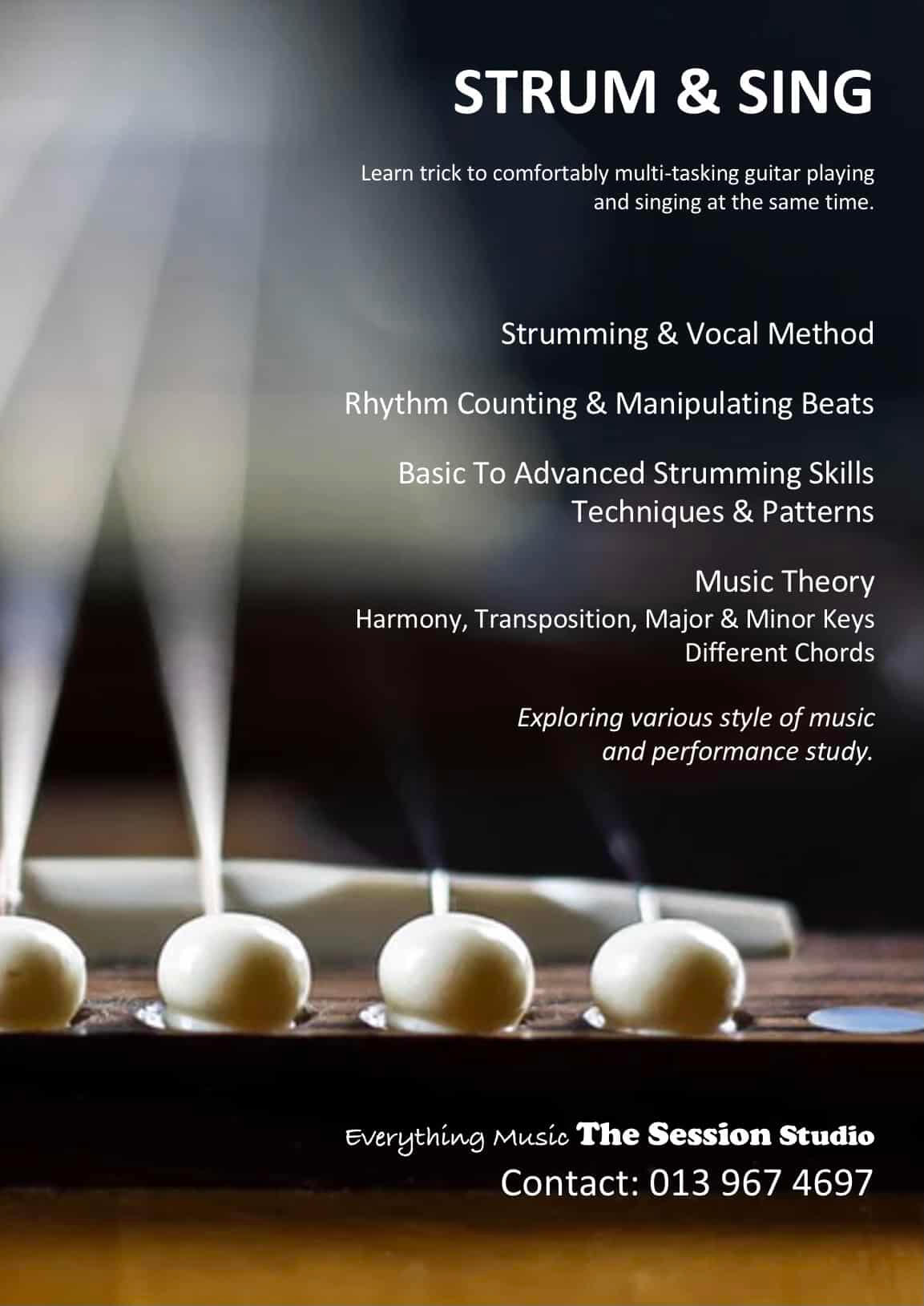 Our Strum & Sing course covers all the basic needs for the purpose and progresses accordingly. We also include some advanced lessons and essential theory classes in the course.